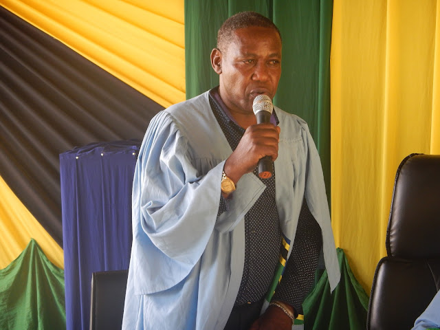 MWENYEKITI wa Halmashauri ya mji wa Masasi ambaye pia ni Diwani wa kata ya Nyasa Mh:Andrew Peter Mtumusha akiongea wakati wa kuvunja Baraza hilo rasmi hapo jana kwenye ukumbi wa mikutano wa Halmashauri hiyo.Kulia kwake ni Mkurugenzi wa Halmashauri ya mji wa Masasi Fortunatus Mathew Kagoro na kushoto kwake ni Makamu mwenyekiti wa Halmashauri ya mji wa Masasi diwani wa kata ya Temeke Mh:Uledi Nivako.